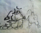 プリントの裏に描いたカール模写。この表情がツボでした(笑)。